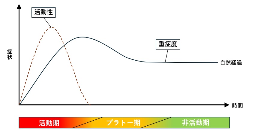 活動性が沈静化し、約1年以上かけてゆっくりと自然に改善する - 非活動期